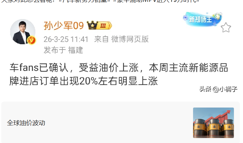 进入 3 月网络配资门户,国内新能源市场明显回暖,而近期油价上调,更是成为一针强力催化剂。据行业消息,受油价上涨影响,本周主流新势力品牌订单整体上涨约20%,大量原本在油车与电车之间犹豫的消费者,纷纷下定决心转向新能源,市场复苏节奏明显加快。