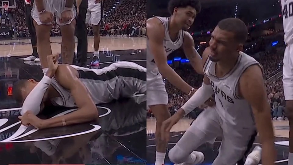 文班亚马捂头缓了一分钟才起身,随即返回更衣室。18分钟后,球队官宣他进入脑震荡协议,本场剩余时间全部缺席。