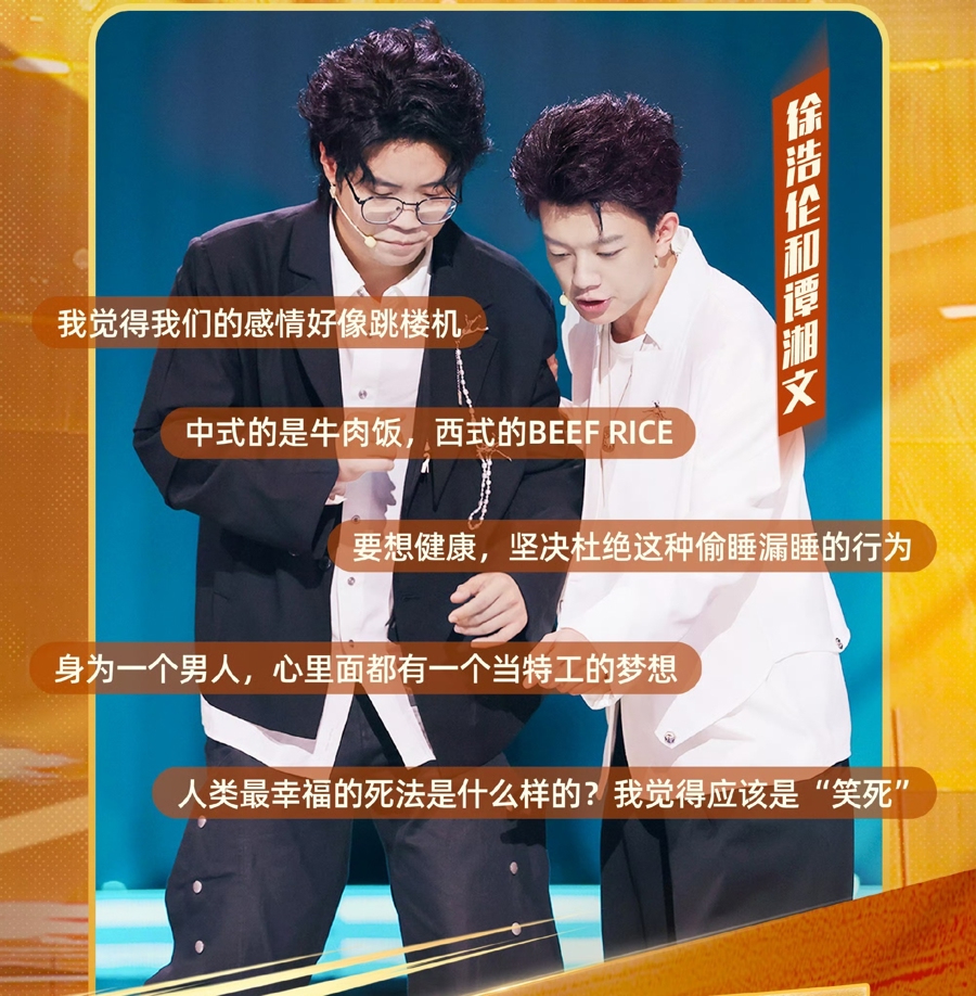 热门演员突破了比赛的胜负逻辑。《脱友2》夺冠的何广智曾言“我一定不能夺冠,太羞耻了这事”;比起是否夺冠,漫才兄弟更在意“想把决赛第二轮演一下”;小帕的淘汰感言依旧可以出圈,她说“相信我,只要多活一天,就会离自己想要的东西更近一点”,她随着退场音乐跳舞,台下掌声雷动。