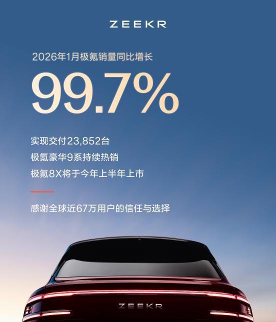 最新数据显示,极氪 1 月交付量达 23852 台,同比暴涨 99.7% 近乎翻倍,不仅为高端豪华车市注入强心剂,更标志着吉利 “极氪向上” 战略迈入全新里程碑,以实打实的成绩印证了中国品牌在高端市场的硬核竞争力。