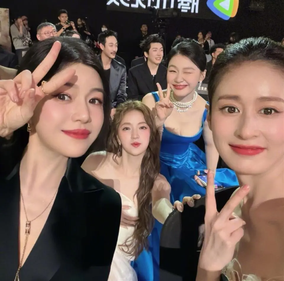 但这大合照最有梗的地方不在这儿。 有眼尖的网友发现,照片里咋还混进去一个闭着眼睛比V的刘端端? 而且旁边还特意P了一朵粉嫩的小花 。 好家伙,这是把人直接给P上去了啊! 原来刘端端和另一位好友当天有事没能到现场,但这帮朋友太会整活了,为了大合照不缺席,直接来了个“云同框”,硬是把人给P进了合影里 。