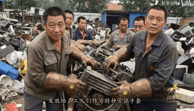 内容生产关系颠覆了,大爷用上灭霸的劳保手套了,奥特马(奥特曼)和马一龙(马斯克)讲起相声了,恐龙上年夜饭桌了;