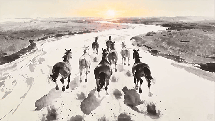 在AI能生成一切的当下,这台春晚的创作者反而严肃又谨慎,要确保AI生成的内容不偏离文化本义,与其说是创造,不如称为“激活”:“马”字的字形演变、《八骏图》的数字重构,这台晚会的AI始终和中国文化交织在一起。